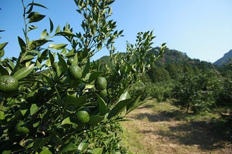 新姫は、熊野市新鹿町で偶然発見された新しい柑橘で、日本古来の野性種ではなく、タチバナと温州ミカンが自然交配した交雑品種であると言われています。平成9年に新しい香酸かんきつとして品種登録されました。果実は直径3cm前後で、重さが25~30gと小さくてかわいいかんきつです。スダチやシークワーサーのように酸味が強く、爽やかな香りに特徴があります。