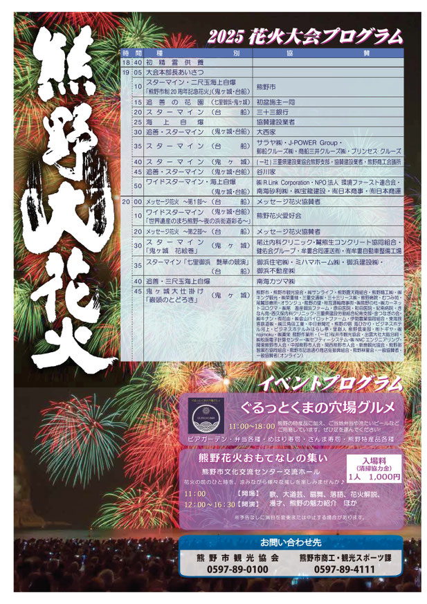 正式名称:熊野大花火大会(くまのおおはなびたいかい)